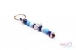 Aussenrum ist die Verzierung in dunkelblauen und silbernen Linsen und dunkelblauen, blauen sowie hellblauen Perlen. Zusätzlich kann der Anhänger mit einem Namen bestückt werden.