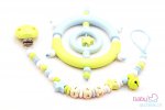 Aussenrum ist die Verzierung in lemon, weissen und blauen Linsen und in lemon, weissen sowie blauen Perlen. Passend dazu ist es mit einem lemon Clib ausgerüstet. Die verschiedenen Farben und Figuren sorgen für viel Staunen und Unterhaltung beim Kind.